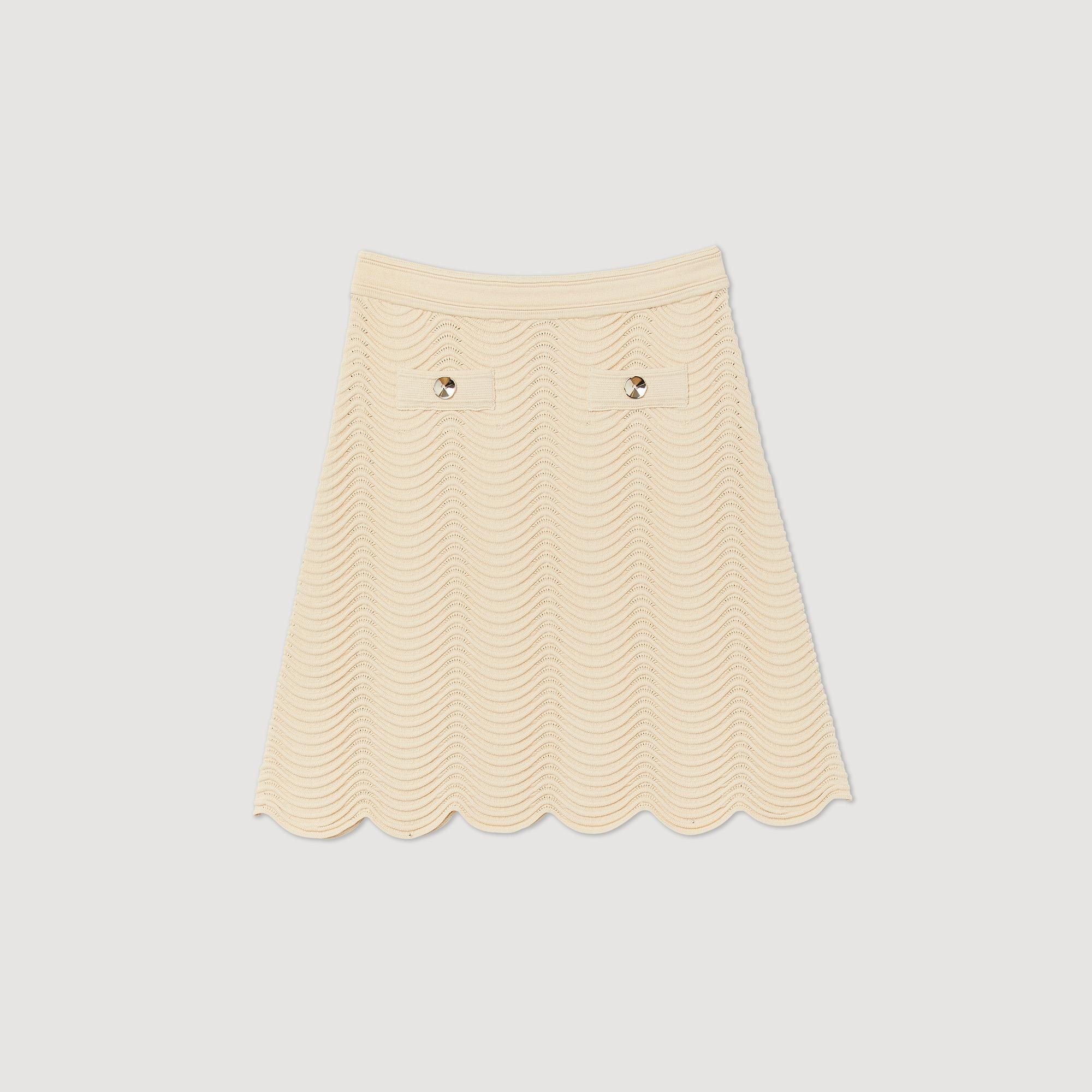 SANDROEtek Ucu Dilimli Ekru Triko Etek
