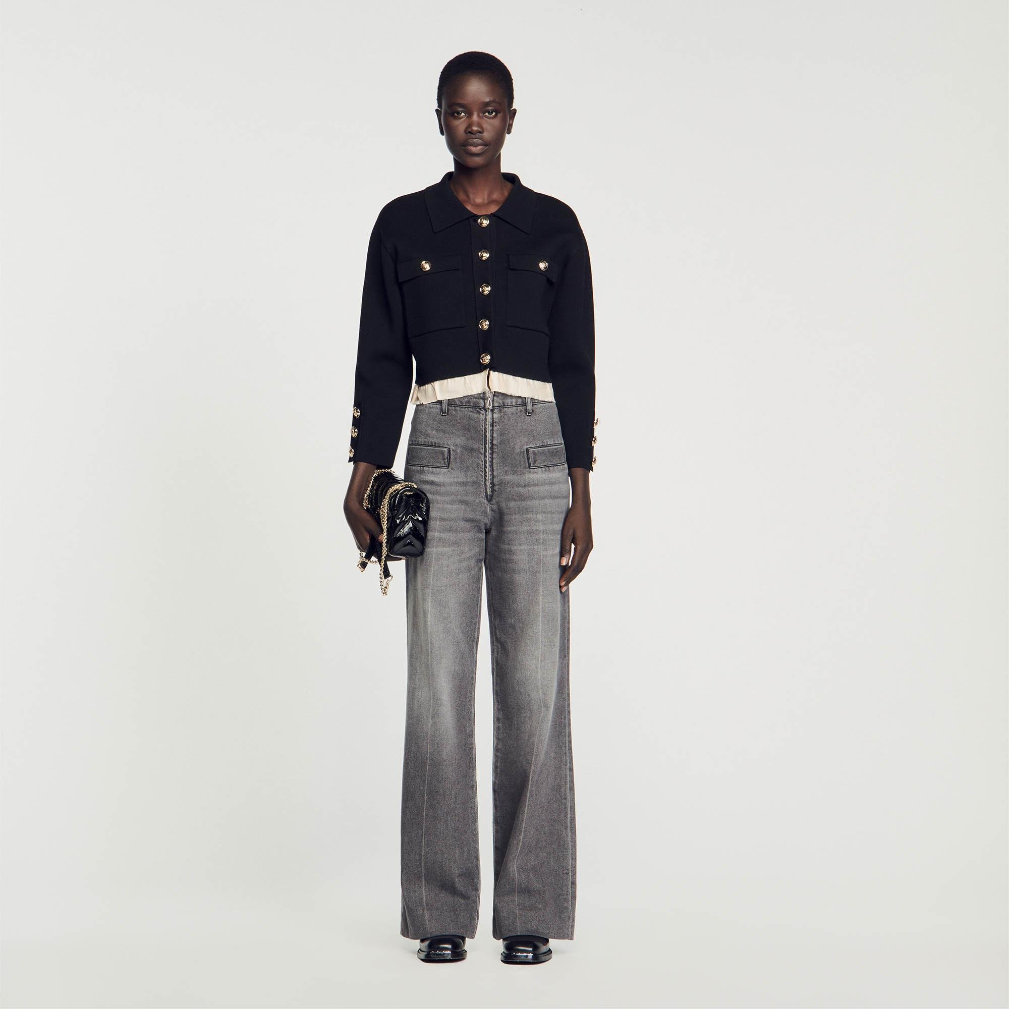 SANDROFırfır Detaylı Siyah Triko Hırka