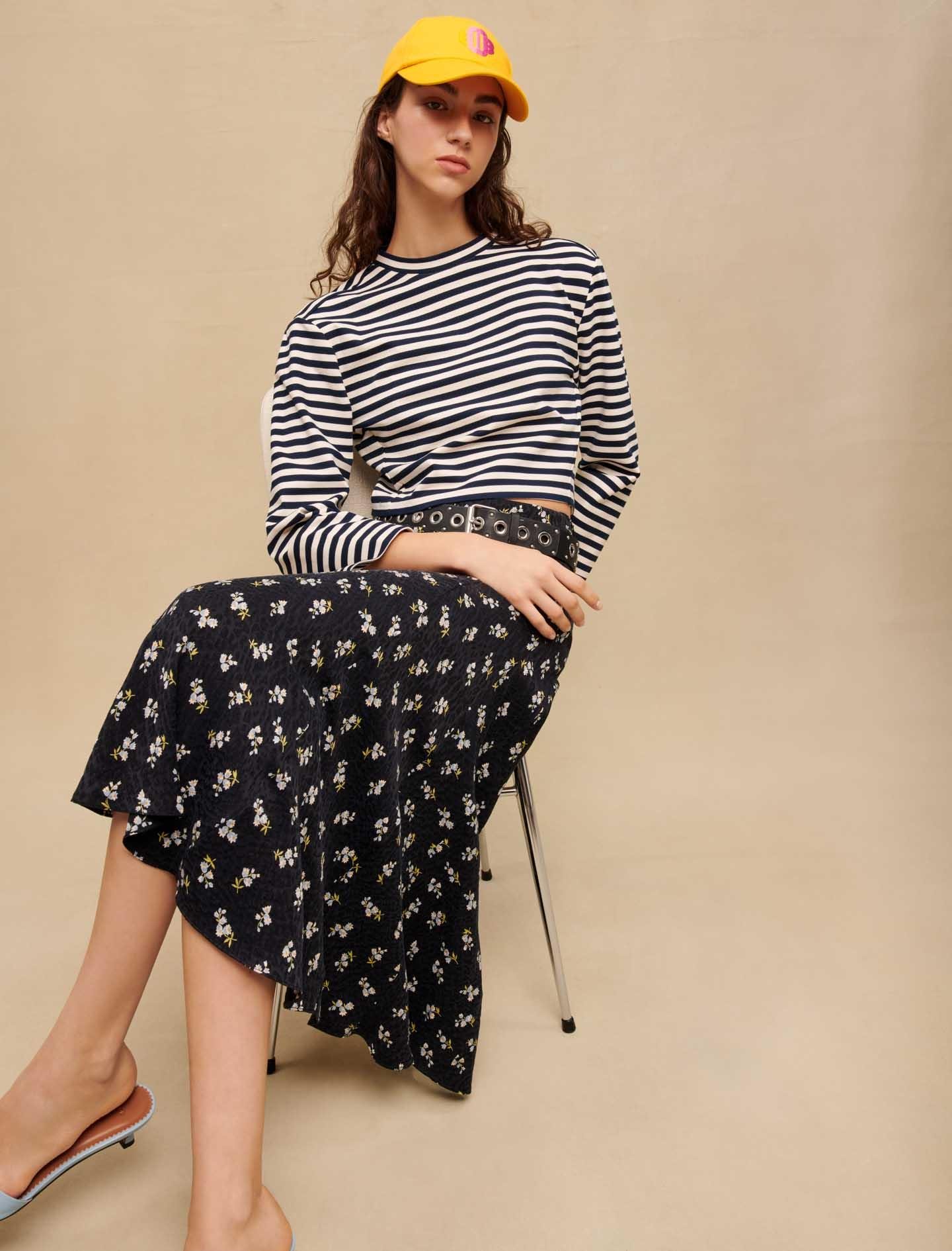 MajeFloral Baskılı Yırtmaçlı Uzun Etek