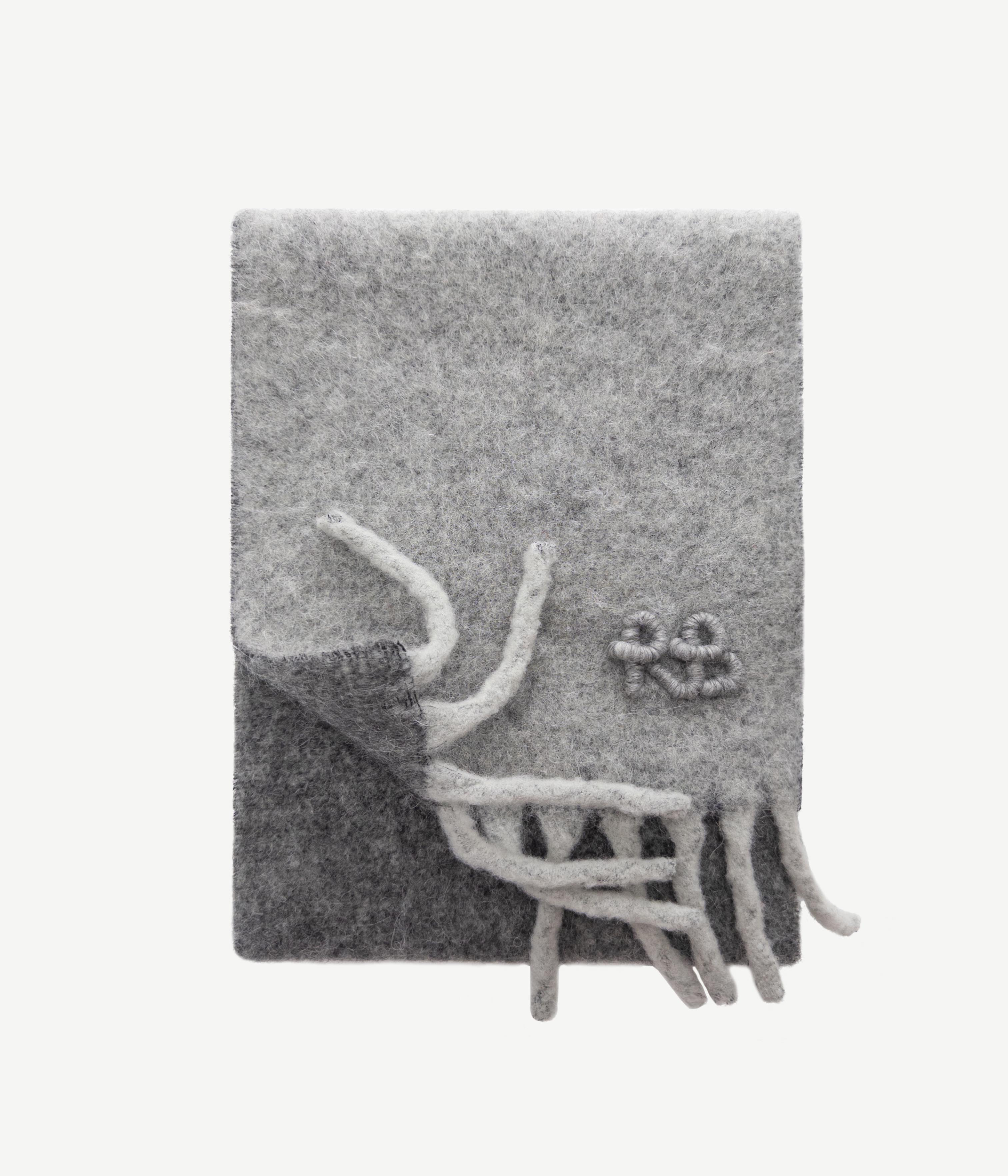 Ruslan BaginskiyGri Logo İşlemeli Püsküllü Yün Atkı