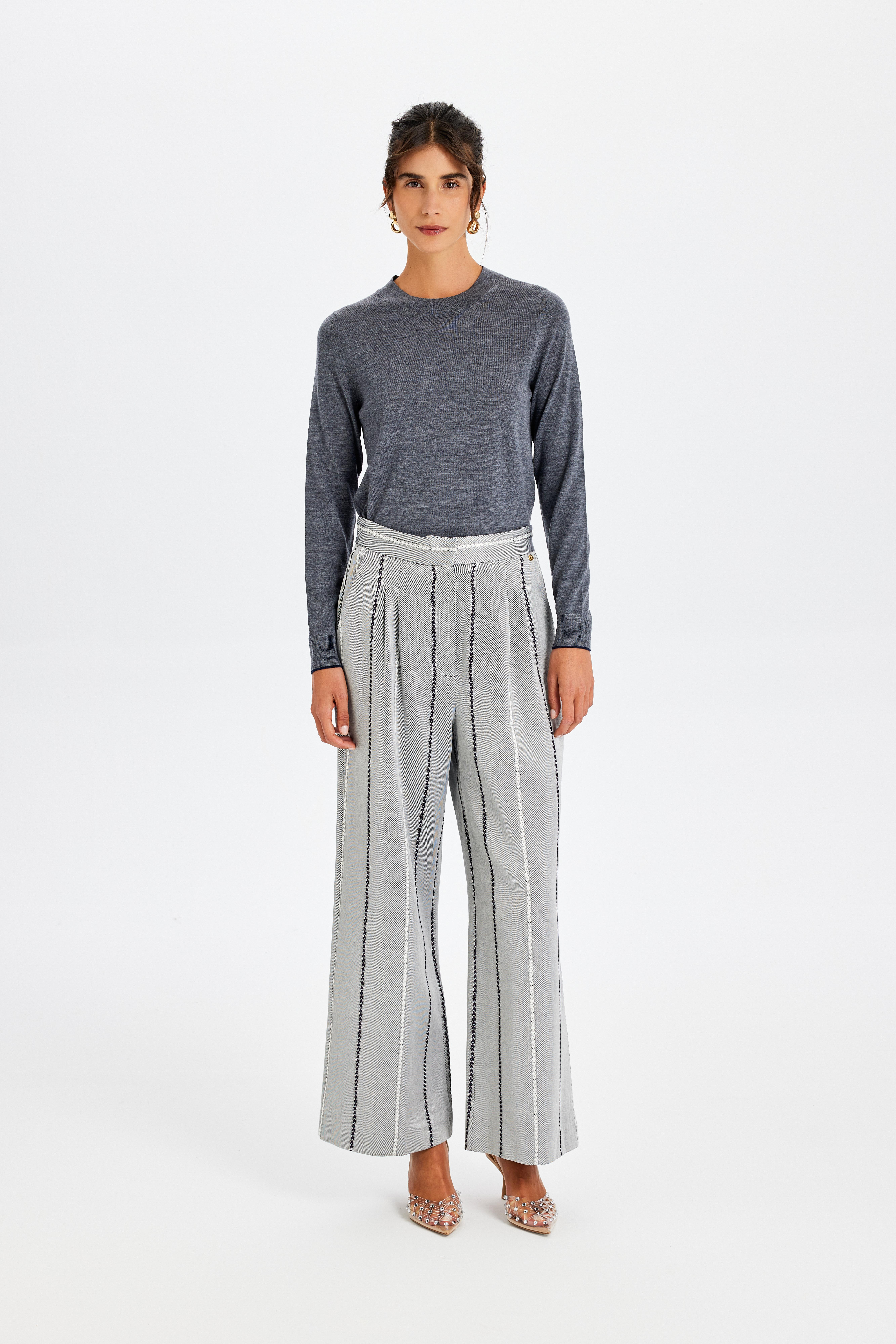 Gri Palazzo Kesim Kutnu Pantolon (FW2500000708_EH0)