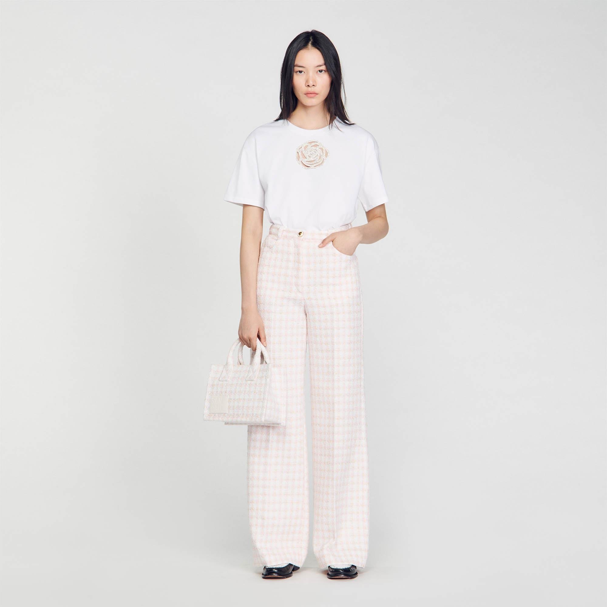 SANDROGül İşlemeli Beyaz Crop T-shirt
