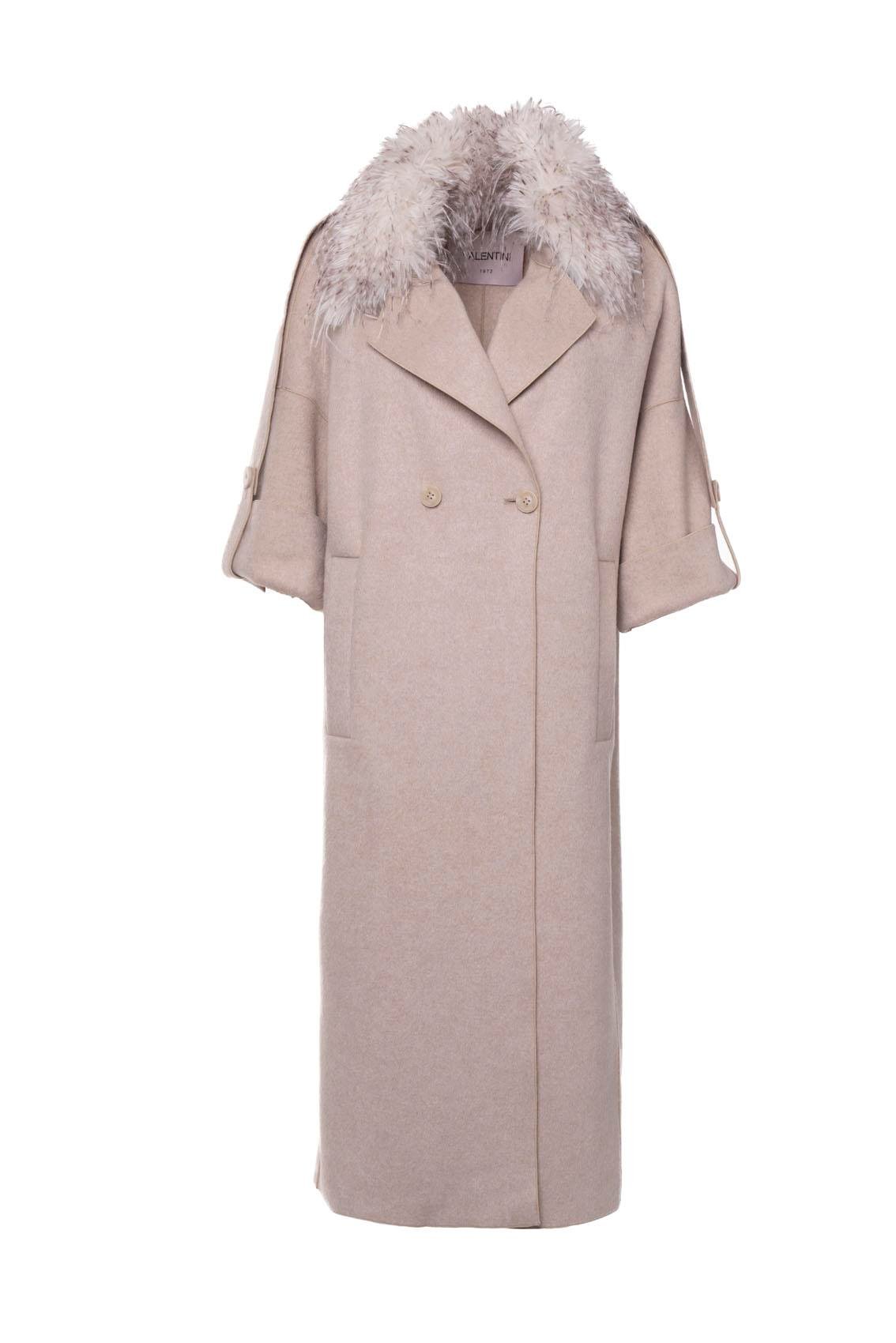 Valentini 1972Kahverengi Geçişli Kürk Yakalı Yün Kaban
