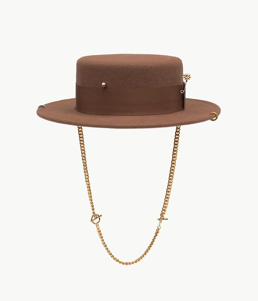 Kahverengi Zincir Detaylı Yün Şapka (FW2300000881_DW7)