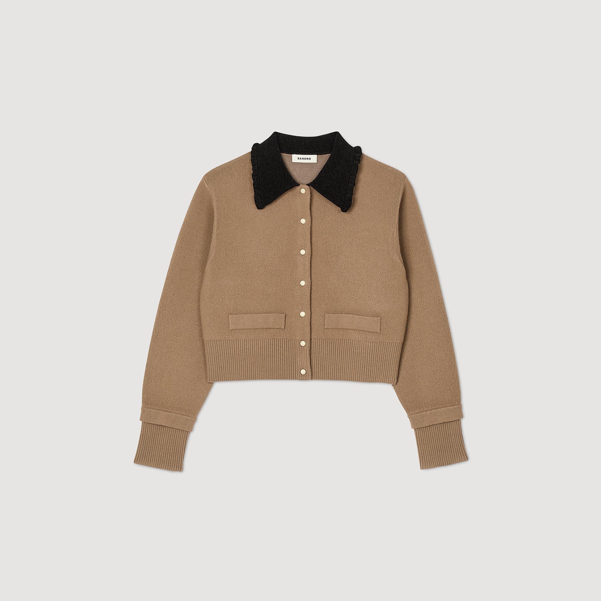 Kontrast Yakalı Camel Triko Hırka (SFPCA00822_13-SN)