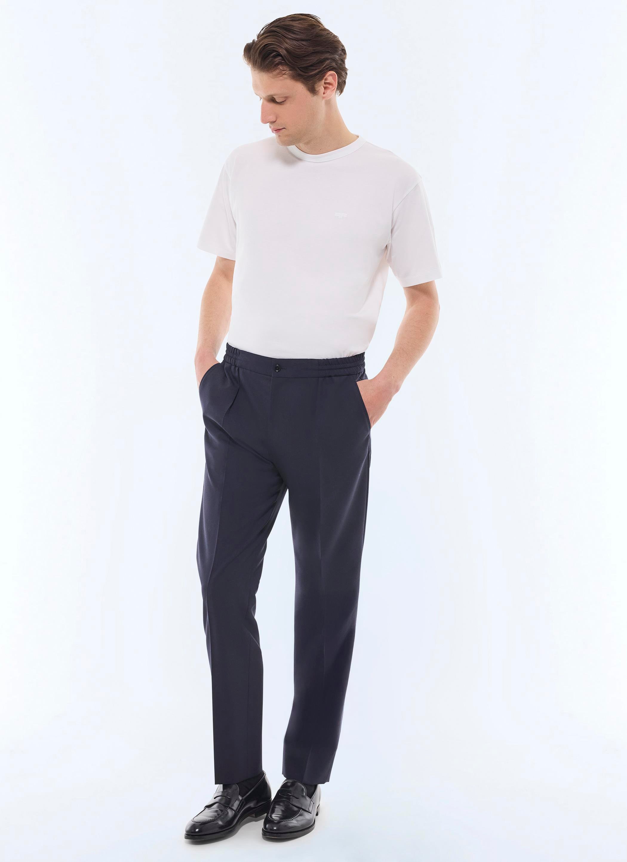 Sertifikalı saf yün flanel kumaştan üretilen bu taupe kahverengi lastikli pantolon, rahatlık ve zarafeti dengeler. Gizli terzilik detaylarıyla vurgulanan rahat kesimiyle öne çıkar.