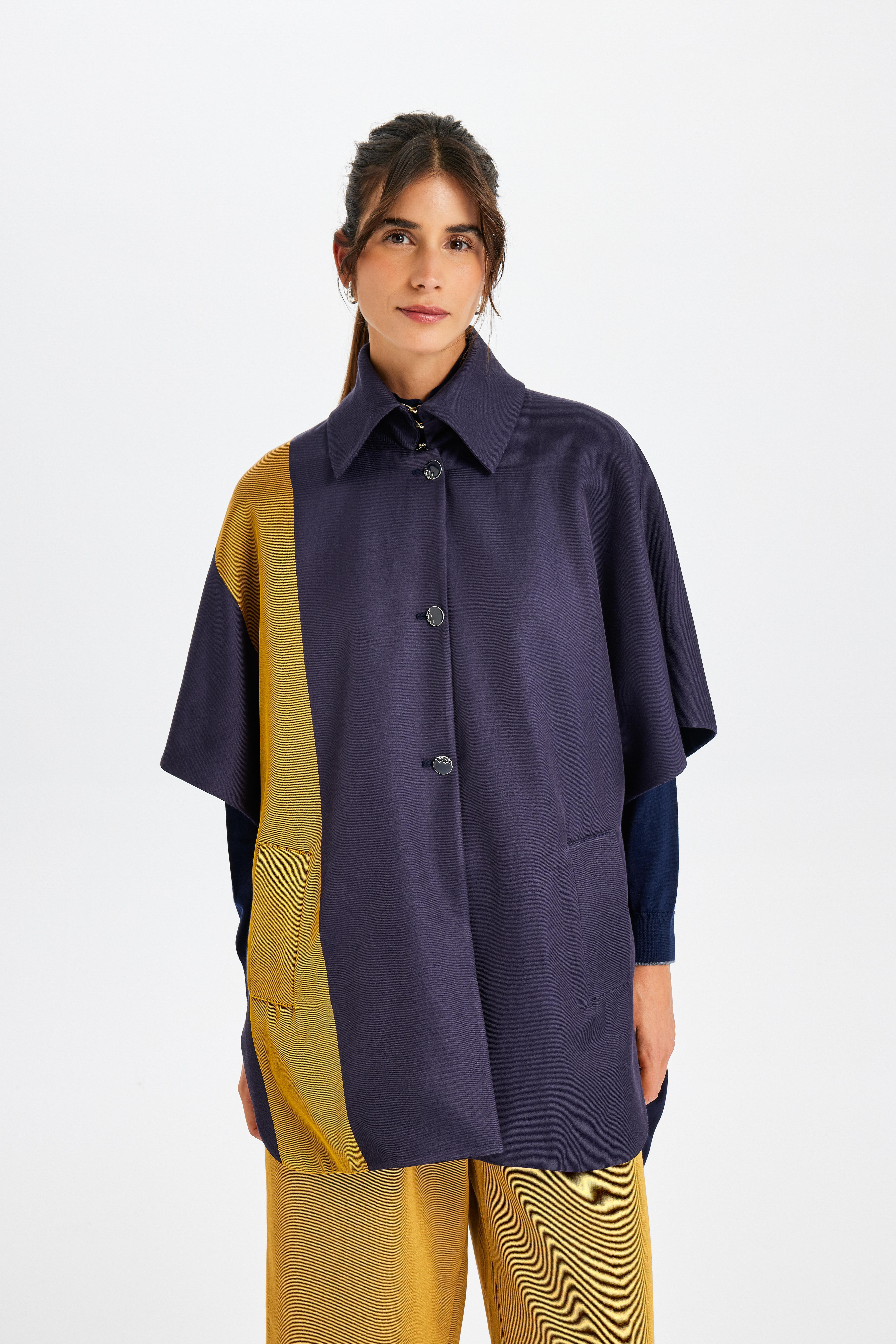 Lacivert Keten Karışımlı Pelerin (FW2500000694_G2C)