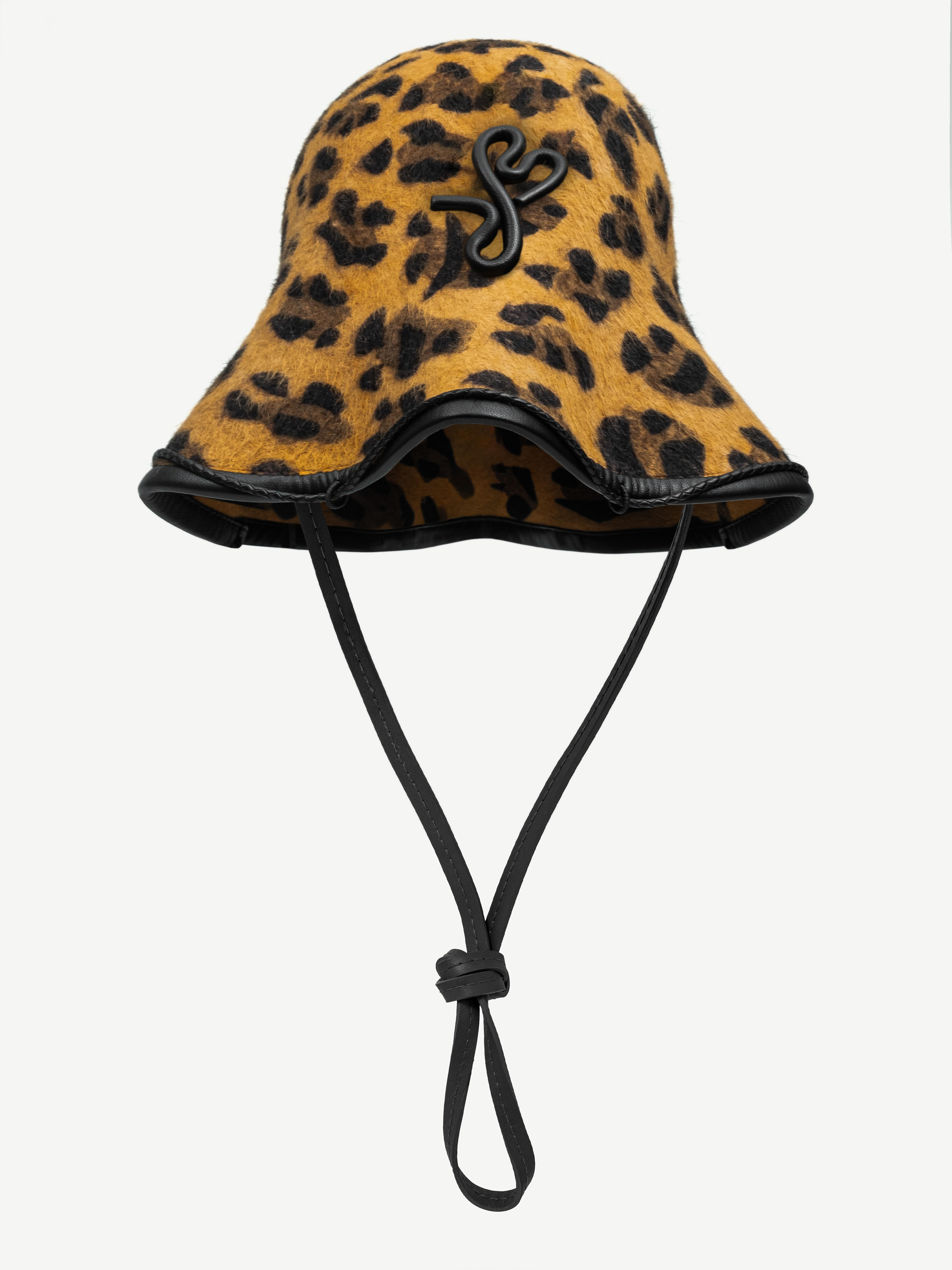 Leopar Desenli Deri Bağcıklı Şapka (FW2500000674_G1W)