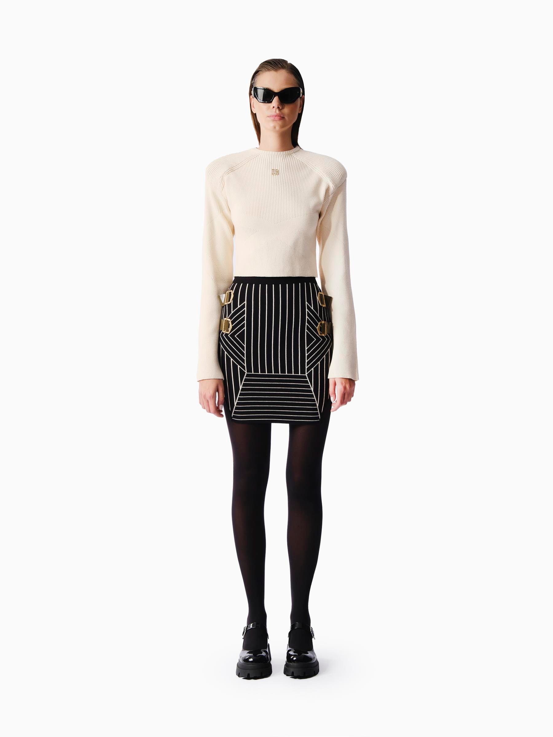 KnitologyMetalik Kemer Detaylı Triko Mini Etek