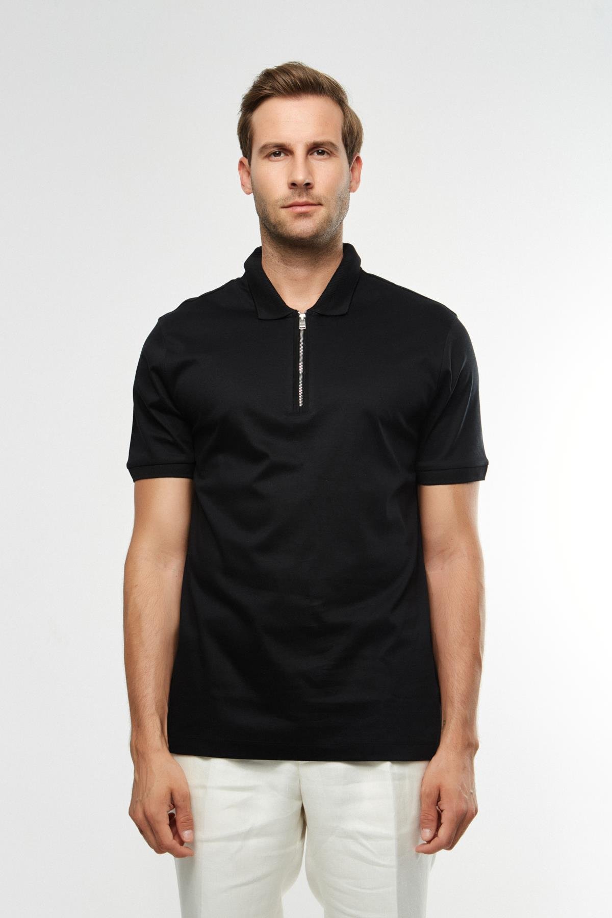 Pamuklu Siyah Polo Yaka T-shirt (SS2400001651_P09)