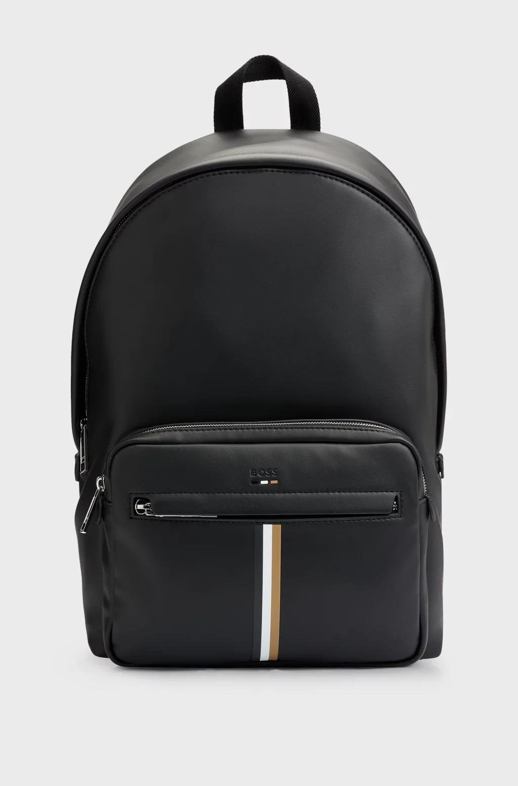 BOSS’un modern tasarıma sahip sırt çantası, markaya özgü detaylar ve imza niteliğindeki şerit detayıyla tamamlanan, kadifemsi yumuşaklığa sahip sentetik kaplamalı kumaştan üretilmiştir. Sentetik kaplamalı kumaş, bazen suni deri olarak da adlandırılır ve gerçek deriye benzer mat, parlak, pürüzsüz veya dokulu bir kaplama görünümü sunmak için tasarlanmıştır.