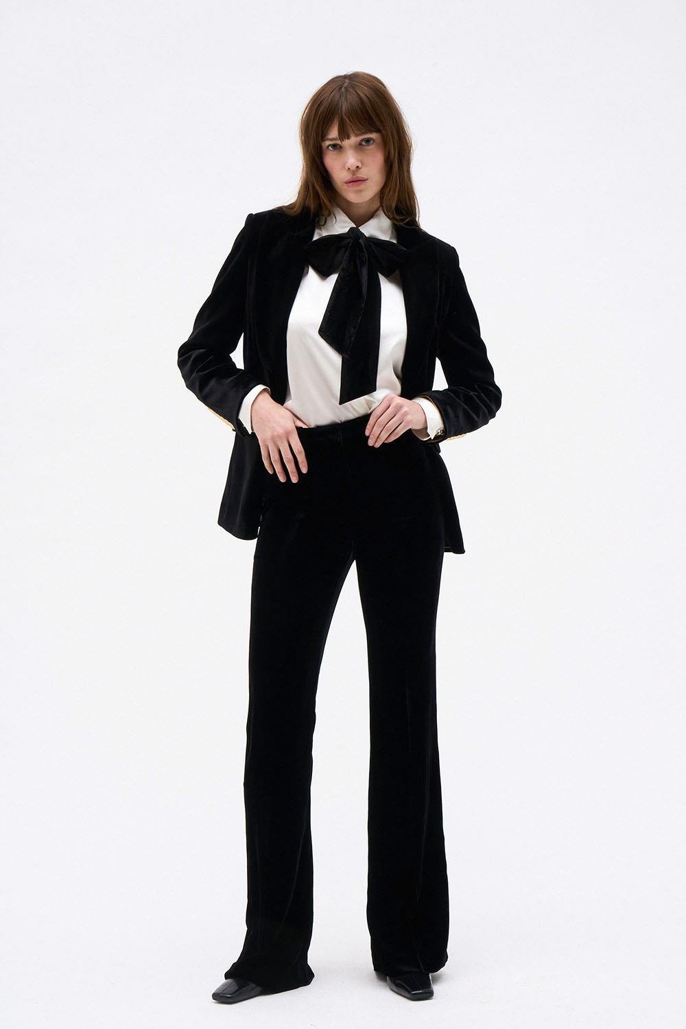 Siyah Geniş Paça Kadife Pantolon (FW2500000762_EX0)