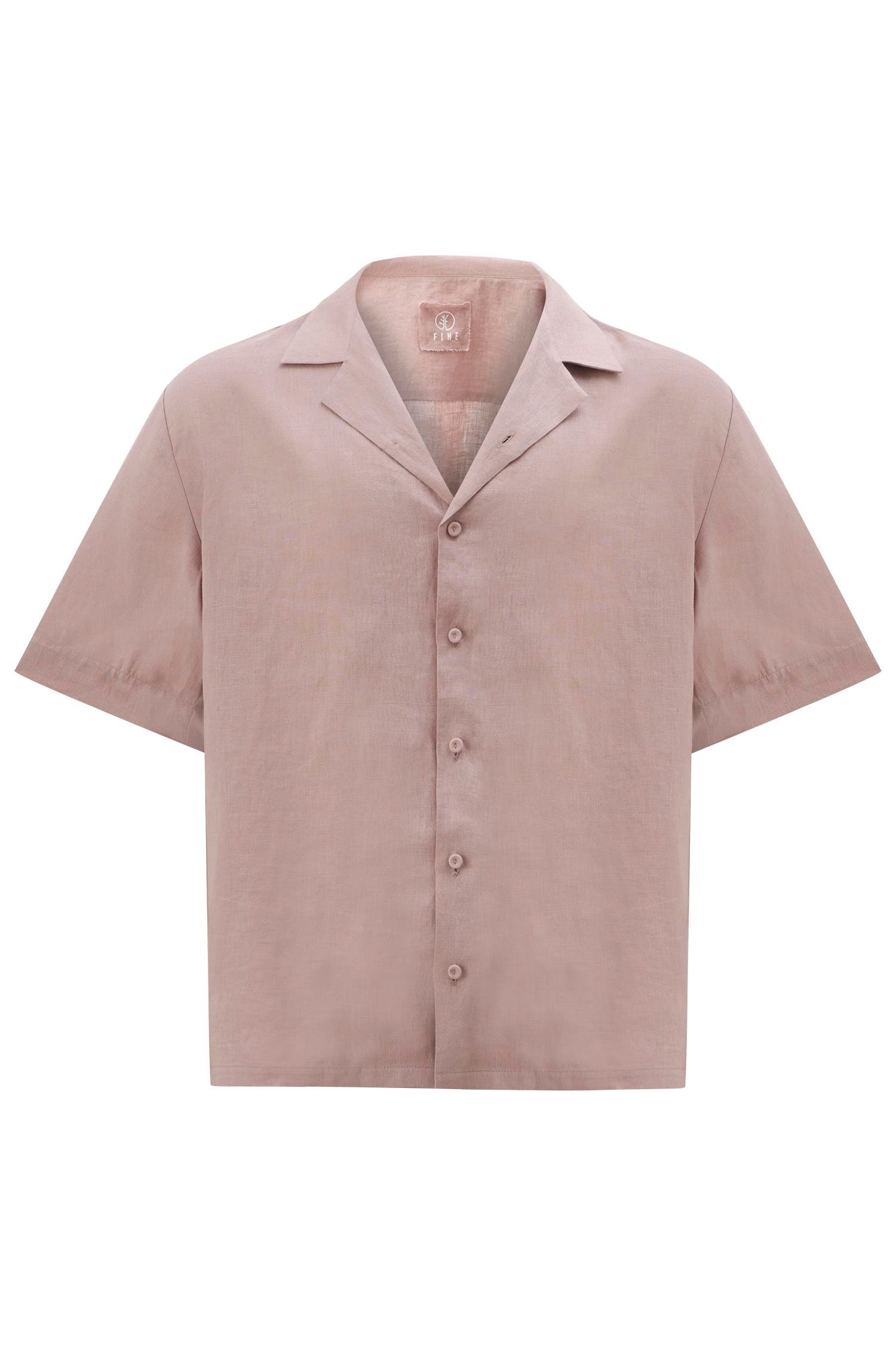 Fine People CommunityV Yaka Leylak Grisi Keten Erkek Gömlek