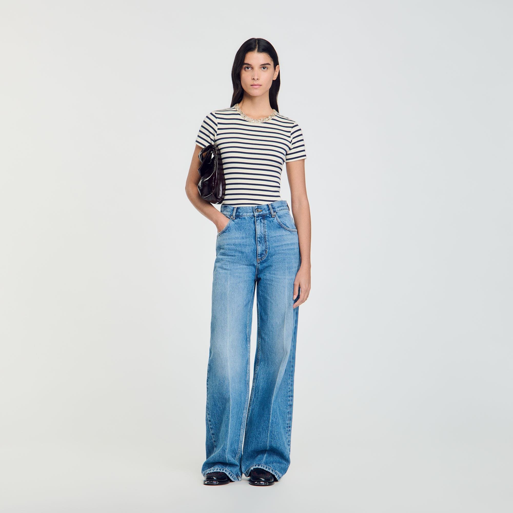 Yakası Taşlı Çizgili T-shirt (SFPTS01511_D251-SN)