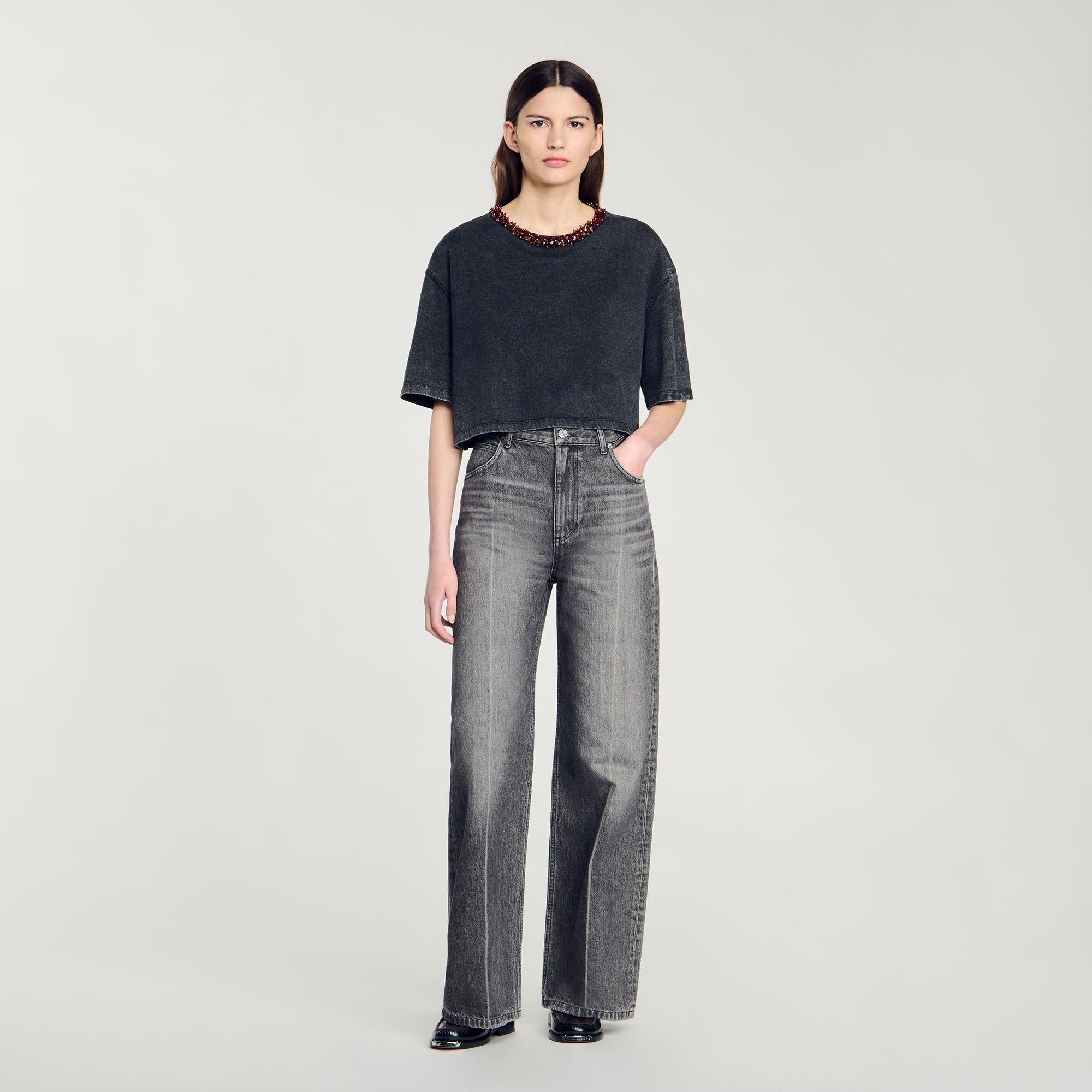Yakası Taşlı Crop T-shirt (SFPTS01545_20-SN)