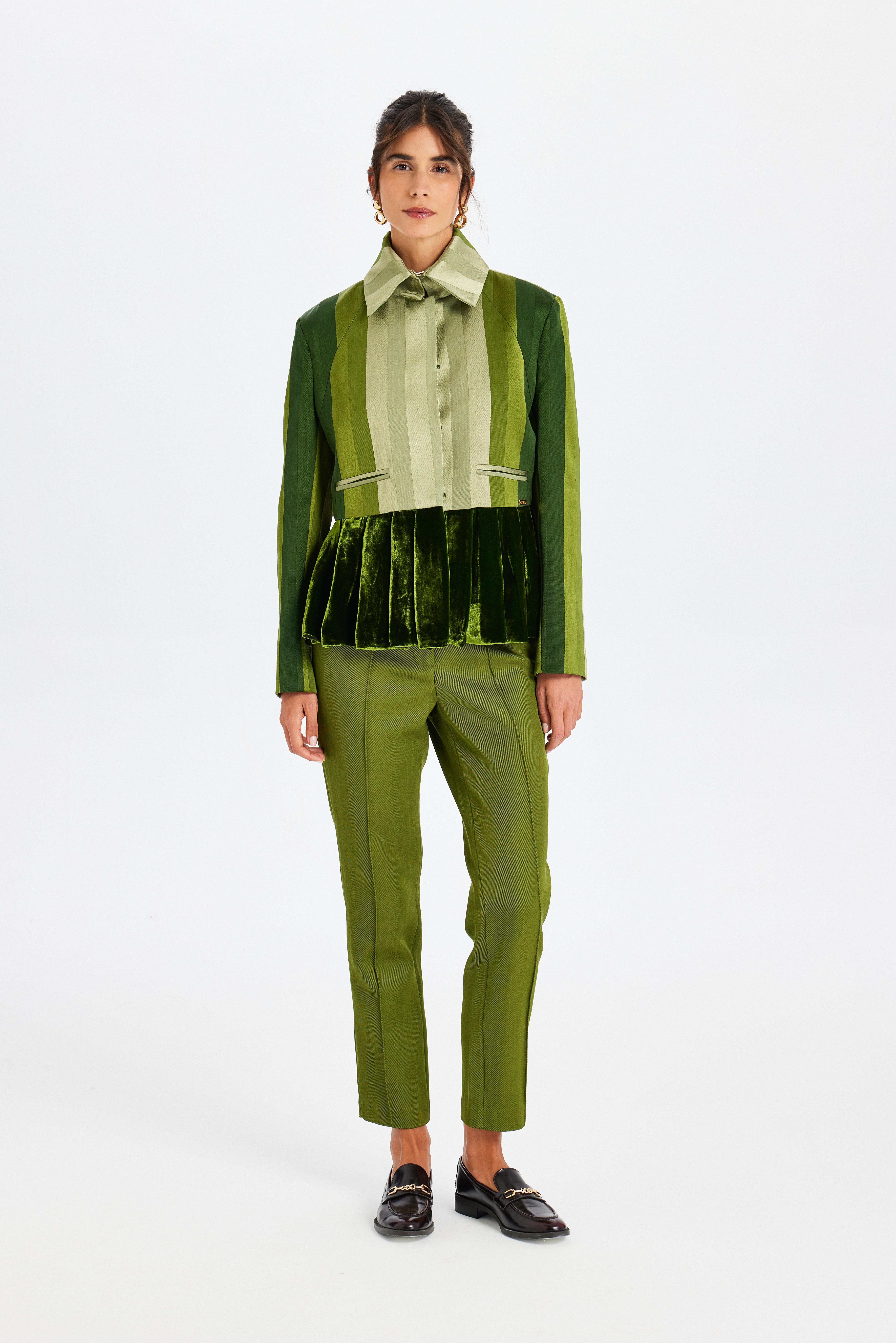 Yeşil Kadife geçişli Kutnu Ceket (FW2500000712_DQ7)