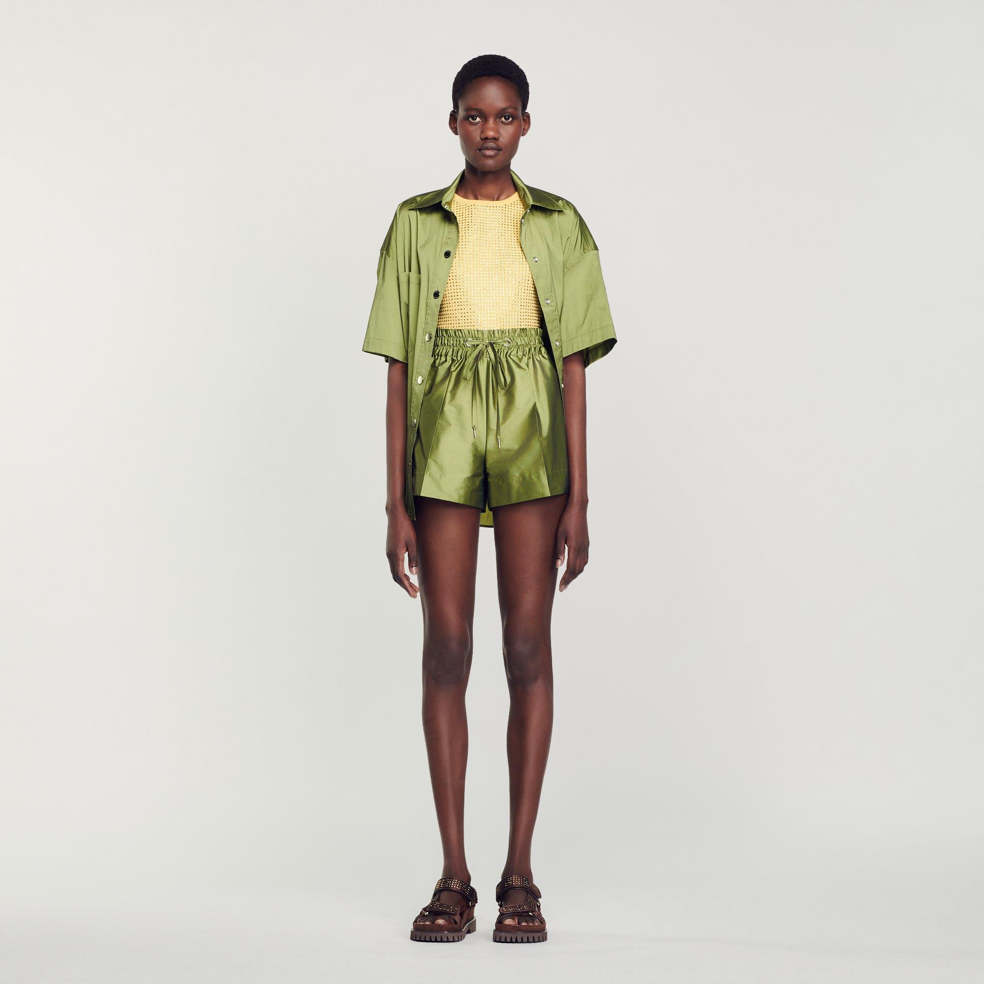 Yeşil Saten Şort (SFPSH00351_H039-SN)