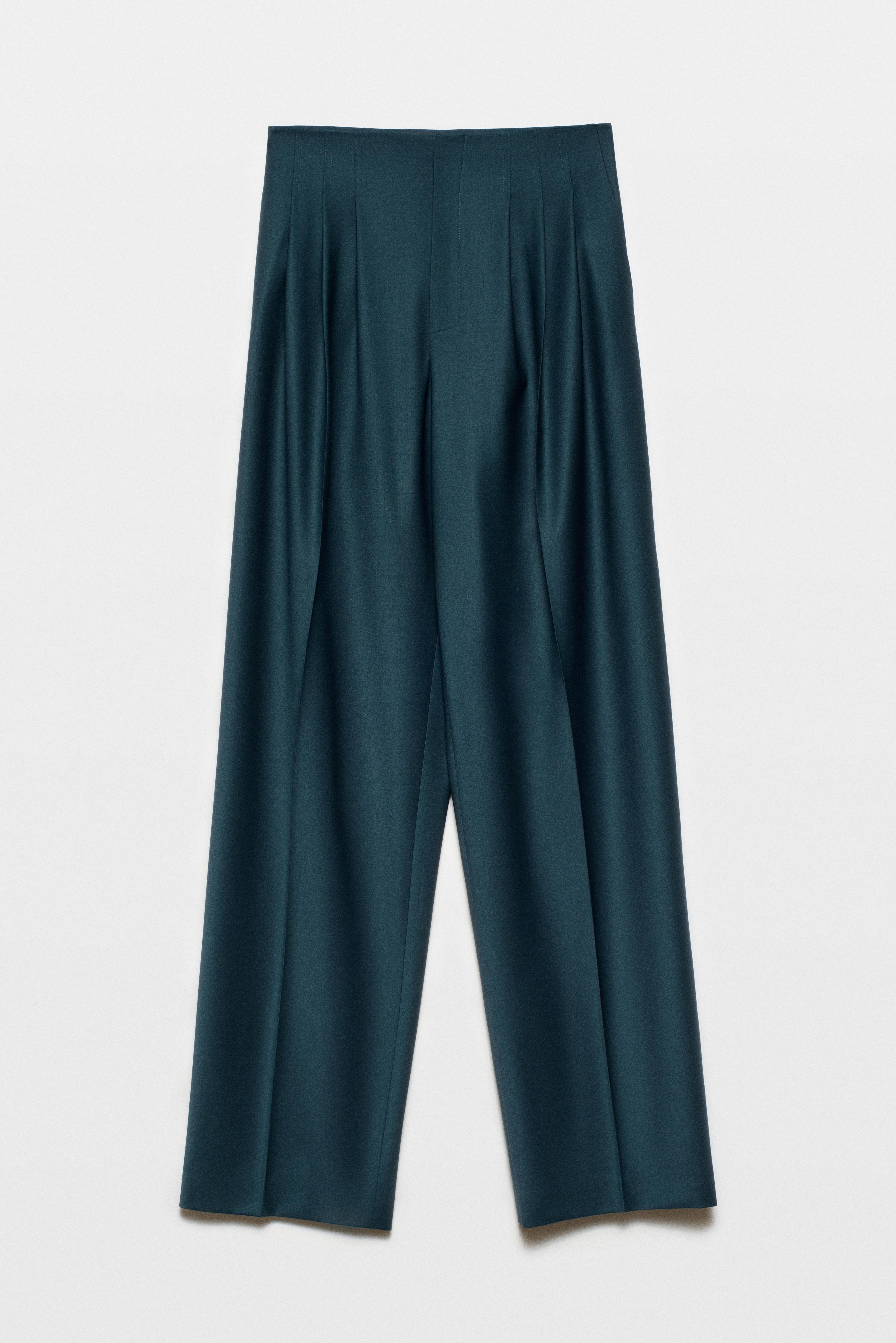 Yüksek Bel Pileli Yeşil Pantolon (FW2500000746_E9H)